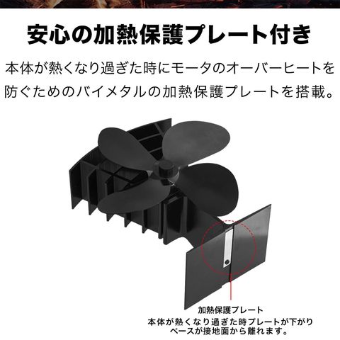 | 特記事項: ・ご使用後は本体が非常に熱くなっています。移動するときは必ず手袋を着用してください。 ・作動中は羽根に触れないように気をつけて下さい。 ・ストーブの表面の温度が340℃以上になっている場合はご使用をお止め下さい。 ・煙突ストーブの場合は煙突の前に設置せず側面に設置して下さい。 |
