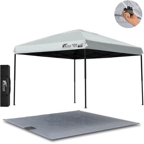 FIELDOOR ワンタッチタープテント 3m (遮光遮熱PU:グレー/スチール/センターロック/グランドシート) テント タープ ワンタッチ ワンタッチテント ワンタッチタープ UV加工 撥水 ベンチレーション 収納バッグ付 日よけ キャンプ バーベキュー 送料無料
