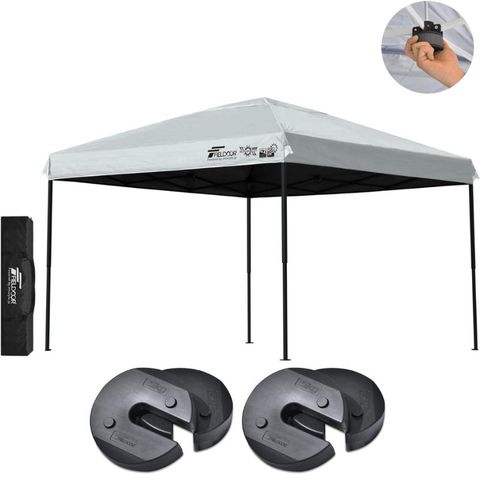 FIELDOOR ワンタッチタープテント 3m (遮光遮熱PU:グレー/スチール/センターロック/ウエイト4点組み) テント タープ ワンタッチ ワンタッチテント ワンタッチタープ UV加工 撥水 ベンチレーション 収納バッグ付 日よけ キャンプ バーベキュー 送料無料