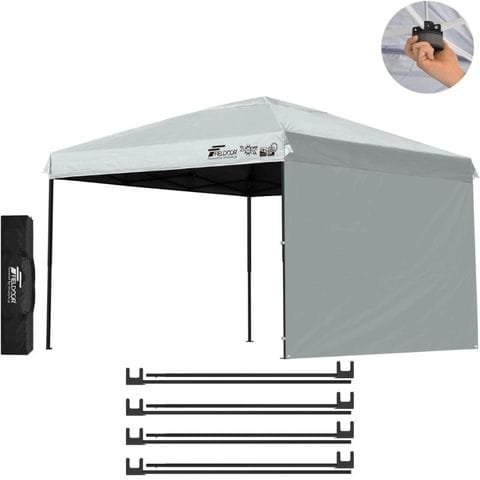 FIELDOOR ワンタッチタープテント 3m (遮光遮熱PU:グレー/スチール/センターロック/強化サポート/サイドシート1枚付) テント タープ ワンタッチ ワンタッチテント ワンタッチタープ UV加工 撥水 ベンチレーション 収納バッグ付 日よけ キャンプ バーベキュー 送料無料