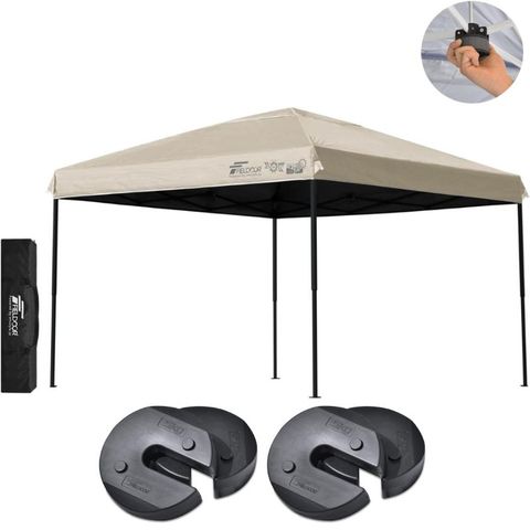 FIELDOOR ワンタッチタープテント 3m (遮光遮熱PU:ライトベージュ/スチール/センターロック/ウエイト4点組み) テント タープ ワンタッチ ワンタッチテント ワンタッチタープ UV加工 撥水 ベンチレーション 収納バッグ付 日よけ キャンプ 送料無料