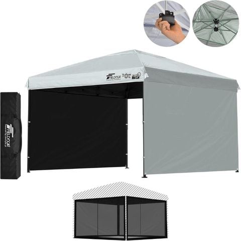 FIELDOOR ワンタッチタープテント 3m (遮光遮熱PU:グレー/スチール/強化版サイドフレーム/センターロック/バグガード/サイドシート2枚付) テント タープ ワンタッチテント ワンタッチタープ UV加工 撥水 ベンチレーション 日よけ キャンプ 送料無料