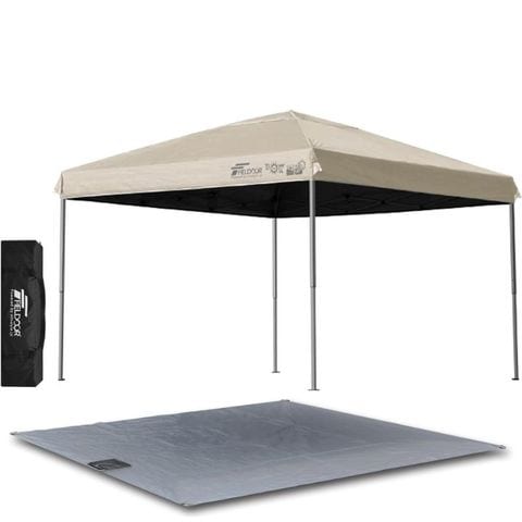 FIELDOOR ワンタッチタープテント 3m (遮光遮熱PU:ライトベージュ/アルミ/4点脚ロック/グランドシート) 軽量 テント タープ ワンタッチ ワンタッチテント ワンタッチタープ UV加工 撥水 ベンチレーション 収納バッグ付 日よけ キャンプ 送料無料