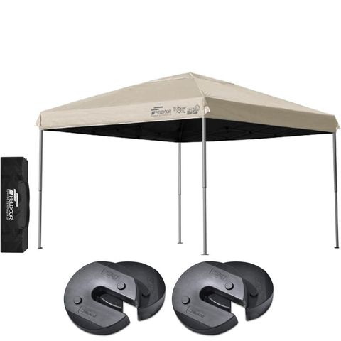 FIELDOOR ワンタッチタープテント 3m (遮光遮熱PU:ライトベージュ/アルミ/4点脚ロック/ウエイト4点組み) 軽量 テント タープ ワンタッチ ワンタッチテント ワンタッチタープ UV加工 撥水 ベンチレーション 収納バッグ付 日よけ キャンプ 送料無料