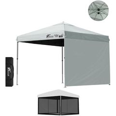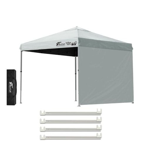 FIELDOOR ワンタッチタープテント 2.5m (遮光遮熱PU:グレー/アルミ/4点脚ロック/フレーム強化サポート/サイドシート1枚付) 軽量 テント タープ ワンタッチ ワンタッチテント ワンタッチタープ UV加工 撥水 ベンチレーション 収納バッグ付 日よけ キャンプ 送料無料