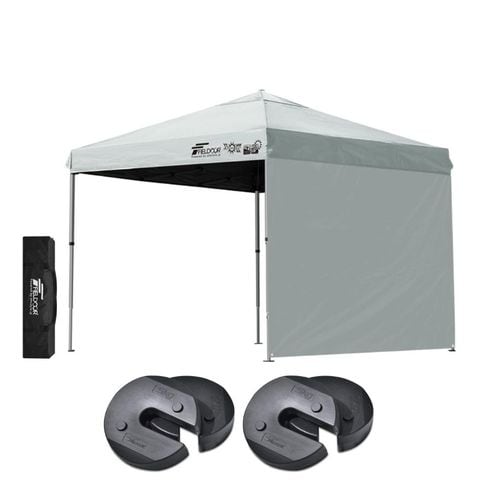 FIELDOOR ワンタッチタープテント 2.5m (遮光遮熱PU:グレー/アルミ/4点脚ロック/ウエイト4点組み/サイドシート1枚付) 軽量 テント タープ ワンタッチテント ワンタッチタープ UV加工 撥水 ベンチレーション 収納バッグ付 日よけ キャンプ 送料無料