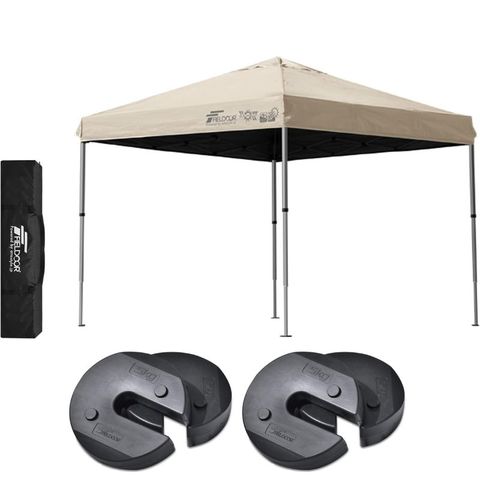 FIELDOOR ワンタッチタープテント 2.5m (遮光遮熱PU:ライトベージュ/アルミ/4点脚ロック/ウエイト4点組み) 軽量 テント タープ ワンタッチ ワンタッチテント ワンタッチタープ UV加工 撥水 ベンチレーション 収納バッグ付 日よけ キャンプ 送料無料