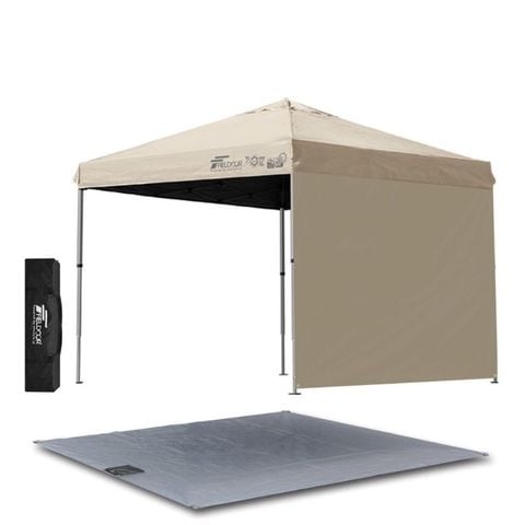FIELDOOR ワンタッチタープテント 2.5m (遮光遮熱PU:ライトベージュ/アルミ/4点脚ロック/専用グランドシート/サイドシート1枚付) 軽量 テント タープ ワンタッチテント ワンタッチタープ UV加工 撥水 ベンチレーション 収納バッグ付 日よけ キャンプ 送料無料