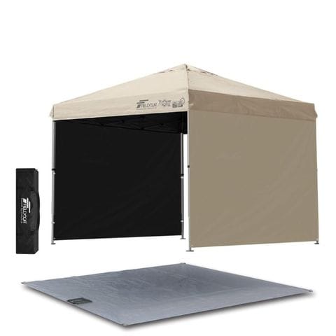 FIELDOOR ワンタッチタープテント 2.5m (遮光遮熱PU:ライトベージュ/アルミ/4点脚ロック/専用グランドシート/サイドシート2枚付) 軽量 テント タープ ワンタッチテント ワンタッチタープ UV加工 撥水 ベンチレーション 収納バッグ付 日よけ キャンプ 送料無料
