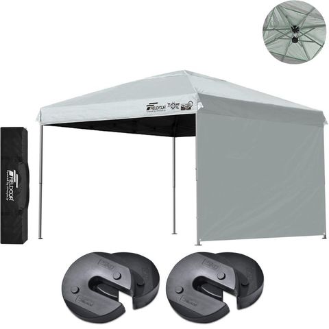 FIELDOOR ワンタッチタープテント 3m (遮光遮熱PU:グレー/アルミ/強化版サイドフレーム/4点脚ロック/ウエイト4点組み/サイドシート1枚付) 軽量 テント タープ ワンタッチテント ワンタッチタープ UV加工 撥水 ベンチレーション 収納バッグ 日よけ キャンプ 送料無料