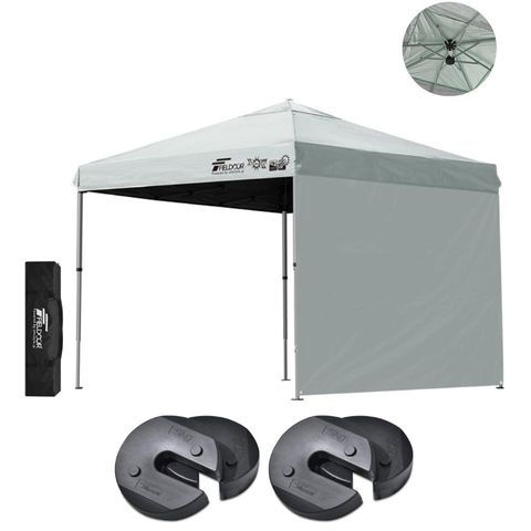 FIELDOOR ワンタッチタープテント 2.5m (遮光遮熱PU:グレー/アルミ/強化版サイドフレーム/4点脚ロック/ウエイト4点組み/サイドシート1枚付) 軽量 テント タープテントタープ UV加工 撥水 ベンチレーション 収納バッグ付 日よけ キャンプ 送料無料