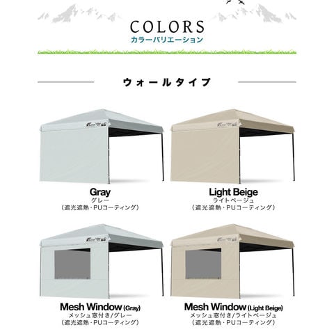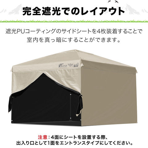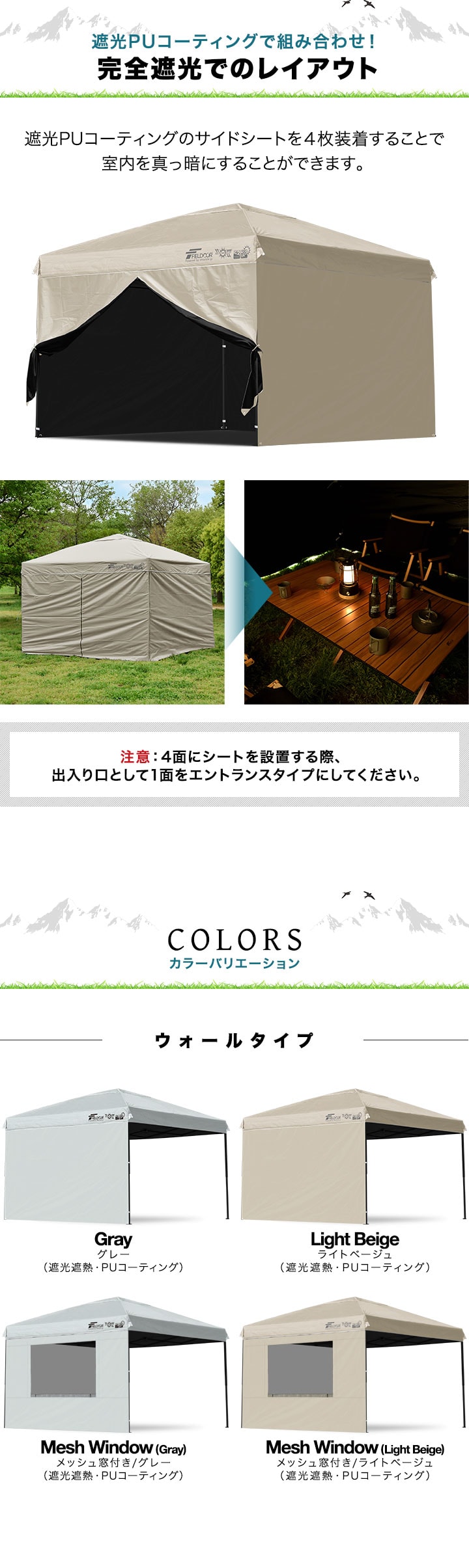 FIELDOOR ワンタッチタープ 3m専用 (ウォール:メッシュ窓付き/1枚単品/完全遮光PU:グレー) サイドシート 横幕 3m 300cm ウォールスクリーン 追加オプション ワンタッチタープ専用 日よけ 目隠し シェード ※タープテント本体別売 送料無料