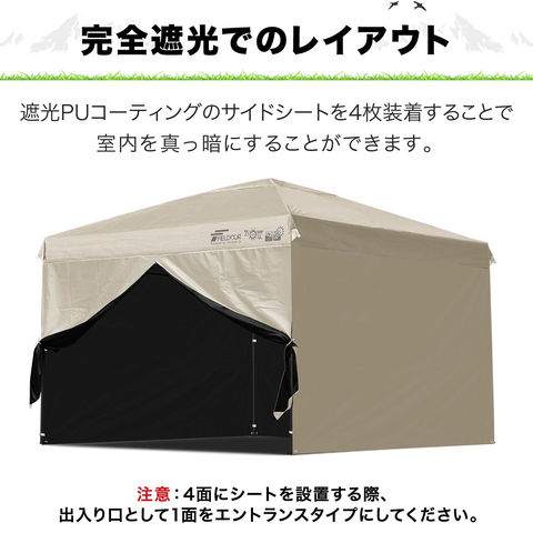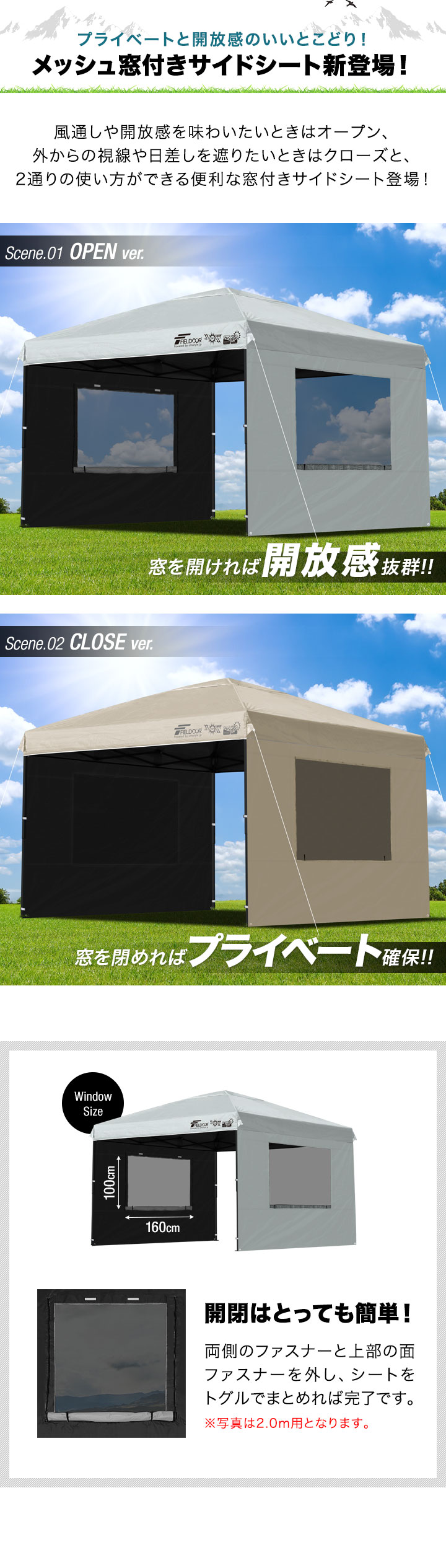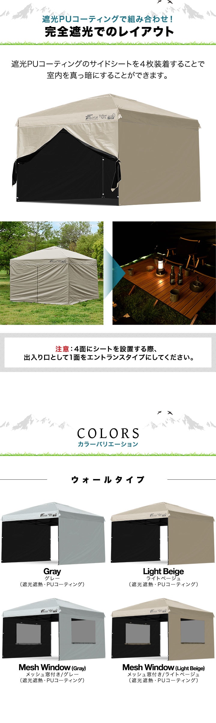 FIELDOOR ワンタッチタープ 3m専用 (ウォール:メッシュ窓付き/2枚セット/完全遮光PU:グレー) サイドシート 横幕 3m 300cm ウォールスクリーン 追加オプション ワンタッチタープ専用 日よけ 目隠し シェード ※タープテント本体別売 送料無料