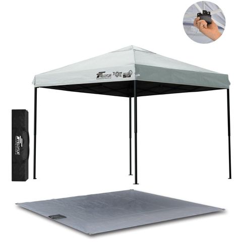 FIELDOOR ワンタッチタープテント 2.5m (遮光遮熱PU:グレー/スチール/センターロック/グランドシート) テント タープ ワンタッチ ワンタッチテント ワンタッチタープ UV加工 撥水 ベンチレーション 収納バッグ付 日よけ キャンプ バーベキュー 送料無料