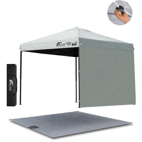 FIELDOOR ワンタッチタープテント 2.5m (遮光遮熱PU:グレー/スチール/センターロック/グランドシート/サイドシート1枚付) テント タープ ワンタッチ ワンタッチテント ワンタッチタープ UV加工 撥水 ベンチレーション 収納バッグ付 日よけ キャンプ 送料無料