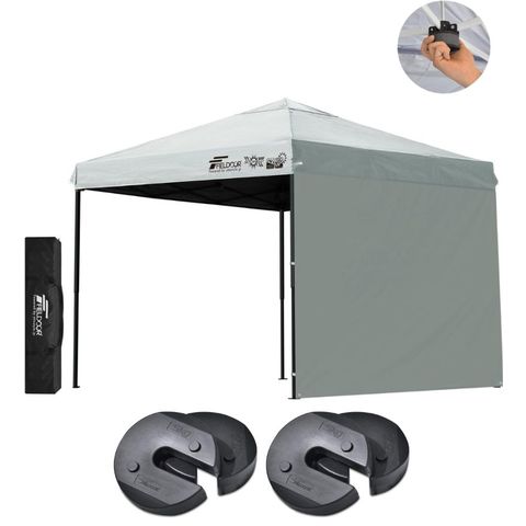 FIELDOOR ワンタッチタープテント 2.5m (遮光遮熱PU:グレー/スチール/センターロック/ウエイト4点組み/サイドシート1枚付) テント タープ ワンタッチ ワンタッチテント ワンタッチタープ UV加工 撥水 ベンチレーション 収納バッグ付 日よけ キャンプ 送料無料