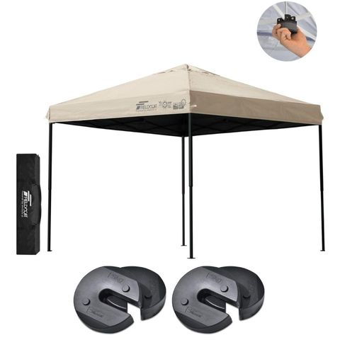 FIELDOOR ワンタッチタープテント 2.5m (遮光遮熱PU:ライトベージュ/スチール/センターロック/ウエイト4点組み) テント タープ ワンタッチ ワンタッチテント ワンタッチタープ UV加工 撥水 ベンチレーション 収納バッグ付 日よけ キャンプ 送料無料