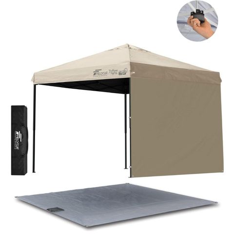 FIELDOOR ワンタッチタープテント 2.5m (遮光遮熱PU:ライトベージュ/スチール/センターロック/グランドシート/サイドシート1枚付) テント タープ ワンタッチ ワンタッチテント ワンタッチタープ UV加工 撥水 ベンチレーション 収納バッグ付 日よけ キャンプ 送料無料