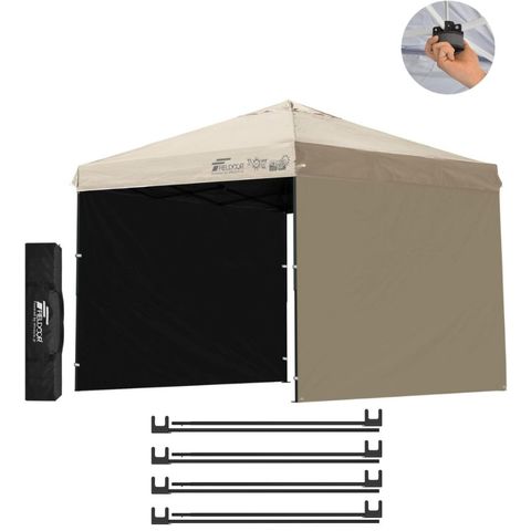 FIELDOOR ワンタッチタープテント 2.5m (遮光遮熱PU:ライトベージュ/スチール/センターロック/強化サポート/サイドシート2枚付) テント タープ ワンタッチ ワンタッチテント ワンタッチタープ UV加工 撥水 ベンチレーション 収納バッグ付 日よけ キャンプ 送料無料