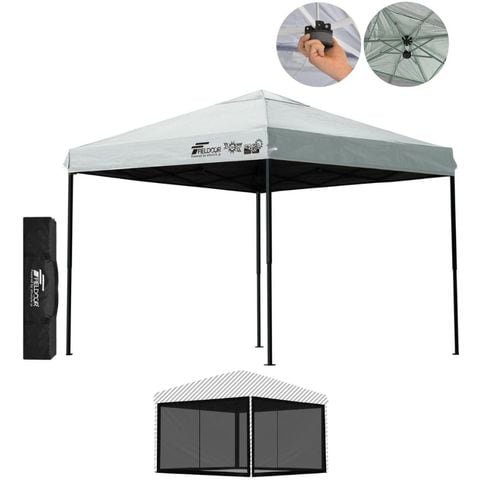 FIELDOOR ワンタッチタープテント 2.5m (遮光遮熱PU:グレー/スチール/強化版サイドフレーム/センターロック/バグガード) テント タープ ワンタッチ ワンタッチテント ワンタッチタープ UV加工 撥水 ベンチレーション 収納バッグ付 日よけ キャンプ 送料無料