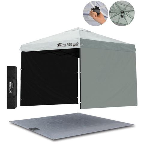 FIELDOOR ワンタッチタープテント 2.5m (遮光遮熱PU:グレー/スチール/強化版サイドフレーム/センターロック/グランドシート/サイドシート2枚付) テント タープ ワンタッチテント ワンタッチタープ UV加工 撥水 ベンチレーション 日よけ キャンプ 送料無料