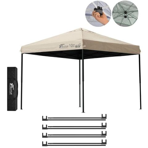 FIELDOOR ワンタッチタープテント 2.5m (遮光遮熱PU:ライトベージュ/スチール/強化版サイドフレーム/センターロック/強化サポート) テント タープ ワンタッチ ワンタッチテント ワンタッチタープ UV加工 撥水 ベンチレーション 収納バッグ付 日よけ キャンプ 送料無料