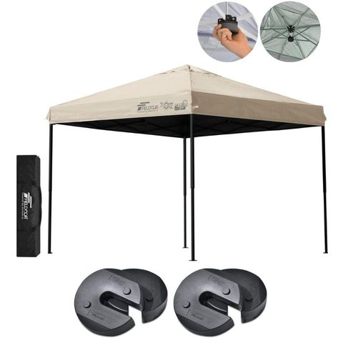 FIELDOOR ワンタッチタープテント 2.5m (遮光遮熱PU:ライトベージュ/スチール/強化版サイドフレーム/センターロック/ウエイト4点組み) テント タープ ワンタッチ ワンタッチテント ワンタッチタープ UV加工 撥水 ベンチレーション 収納バッグ付 日よけ キャンプ 送料無料