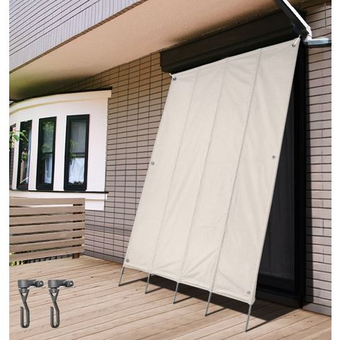 日よけスクリーン 幅1.8×丈2.4m (遮光高耐水:ライトベージュ/本体&ネジ式自在フック2個組) ぱぱっと日よけスクリーン 日よけ サンシェード 日よけスクリーン ポール付 立てかけるだけの簡単設置 シェード 日除け UVカット 撥水 西日対策 おしゃれ たてす よしず 送料無料