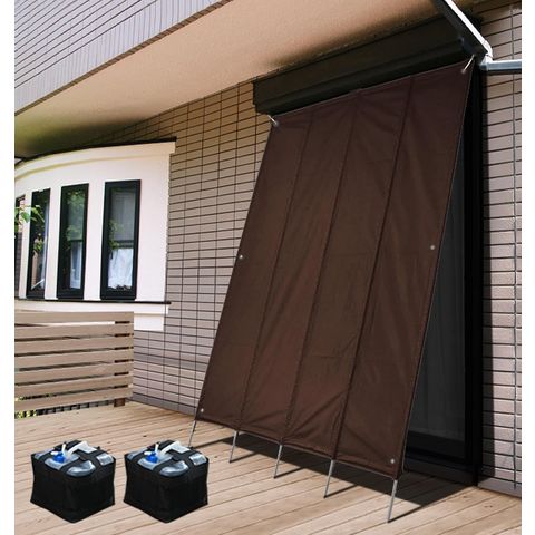 日よけスクリーン 幅1.8×丈2.4m (遮光高耐水:ダークブラウン/本体&ウェイトバッグ2個組) ぱぱっと日よけスクリーン 日よけ サンシェード 日よけスクリーン ポール付 立てかけるだけの簡単設置 シェード 日除け UVカット 撥水 西日対策 おしゃれ たてす よしず 送料無料