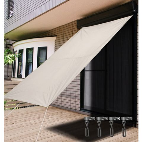 日よけ サンシェード スクリーン (遮光高耐水:ライトベージュ/本体&ネジ式自在フック4個組) 幅200×丈290cm 大型 日よけスクリーン オーニング タープ よしず すだれ シェード 日除け 紫外線 UVカット 撥水 耐水 簡単 設置 窓 庭 おしゃれ 洋風 西日対策 2m×2.9m 送料無料