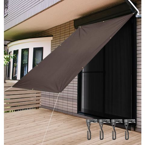 日よけ サンシェード スクリーン (遮光高耐水:ダークブラウン/本体&ネジ式自在フック4個組) 幅200×丈240cm 大型 日よけスクリーン オーニング タープ よしず すだれ シェード 日除け 紫外線 UVカット 撥水 耐水 簡単 設置 窓 庭 おしゃれ 洋風 西日対策 2m×2.4m 送料無料