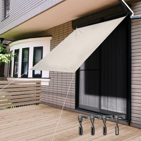 日よけ サンシェード スクリーン (遮光高耐水:ライトベージュ/本体&ネジ式自在フック4個組) 幅200×丈190cm 日よけスクリーン オーニング タープ よしず すだれ シェード 日除け 紫外線 UVカット 撥水 耐水 簡単 設置 窓 庭 おしゃれ 洋風 西日対策 2m×1.9m 送料無料