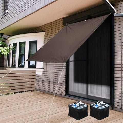 日よけ サンシェード スクリーン (遮光高耐水:ダークブラウン/本体&ウェイトバッグ2個組) 幅200×丈190cm 日よけスクリーン オーニング タープ よしず すだれ シェード 日除け 紫外線 UVカット 撥水 耐水 簡単 設置 窓 庭 おしゃれ 洋風 西日対策 2m×1.9m 送料無料