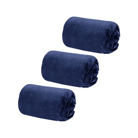 ひざ掛け ブランケット 大判 (ネイビー/同色3枚セット) 140cm×200cm フランネル毛布 ブランケット マイクロファイバー毛布 オールシーズン 洗える 暖かい おしゃれ S シングル 軽い 薄い 洗える 洗濯機 丸洗い 低ホルム やわらか かわいい 送料無料