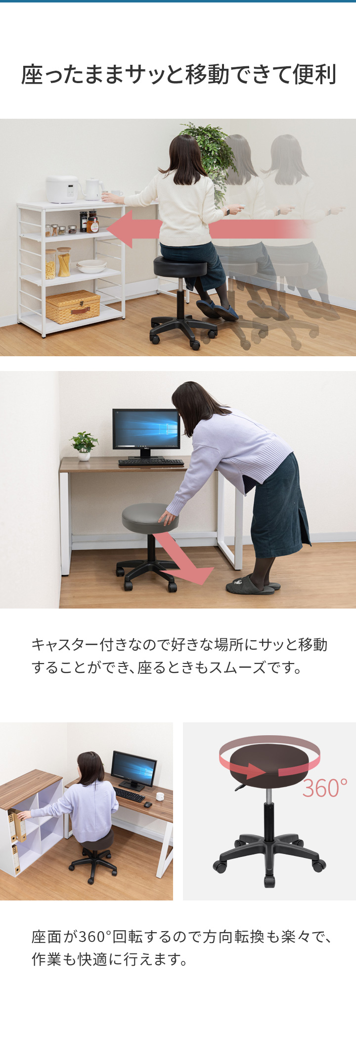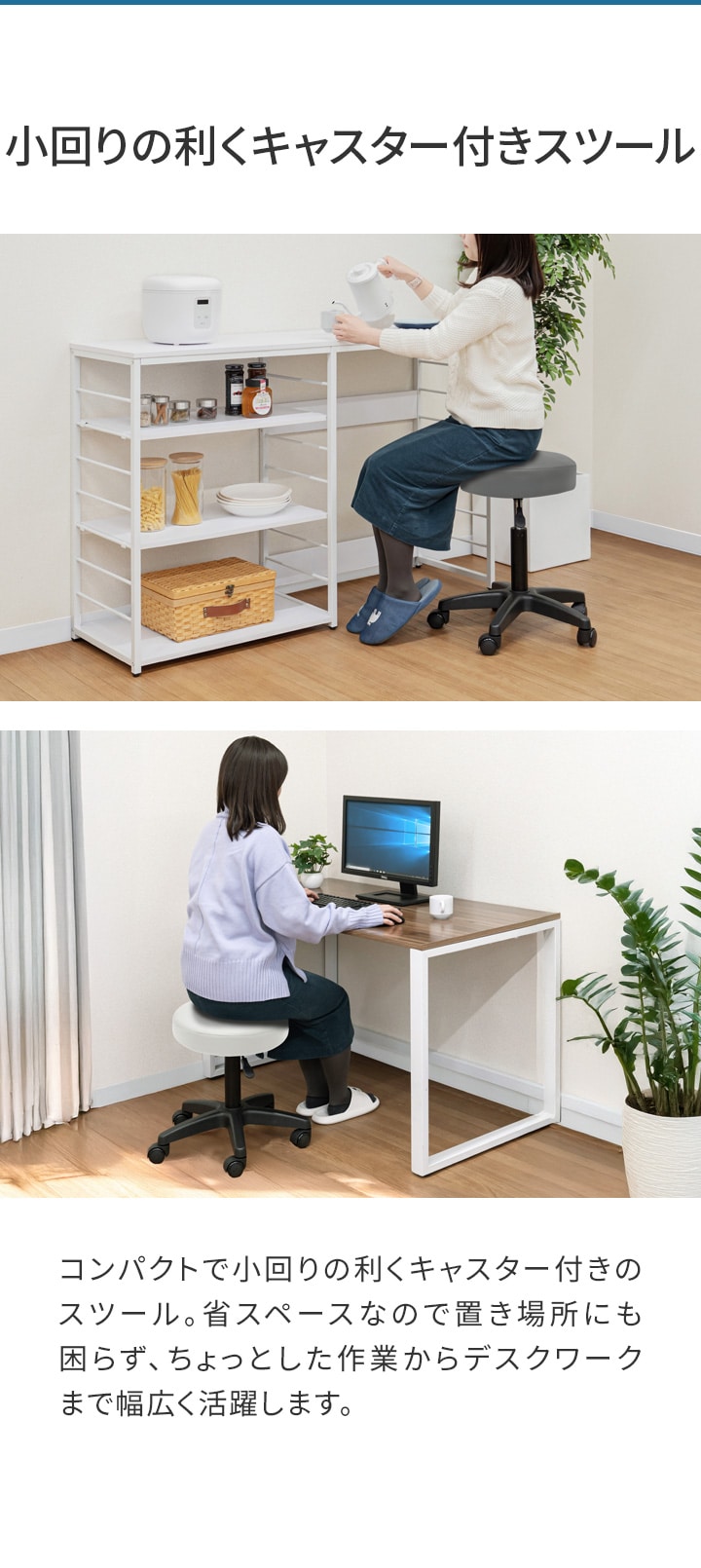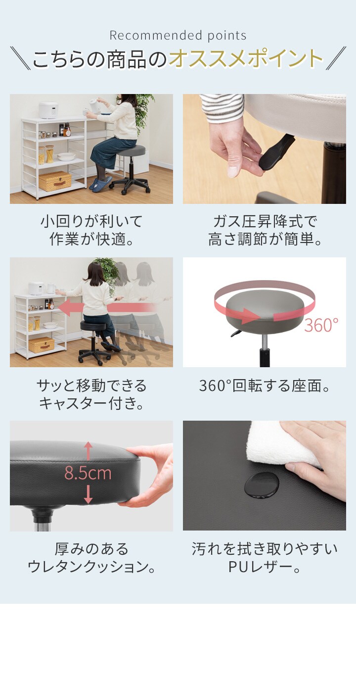 スツール キャスター付き 丸椅子 (ブラック/単品) 回転式 座面高 ハイタイプ 44cm-60cm ガス圧 昇降 PUレザー クッションスツール ワークスツール エステスツール カットチェア ラウンドスツール 美容室 いす イス 背なし 送料無料