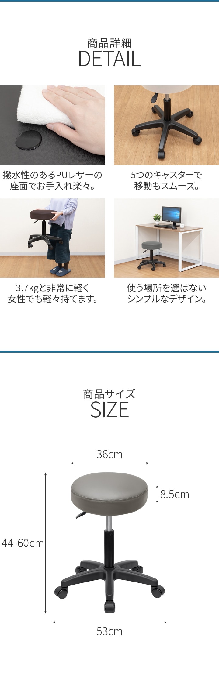 | サイズ: (約)幅53cm×高さ44~60cm ※座面:(約)直径36cm×厚み8.5cm |