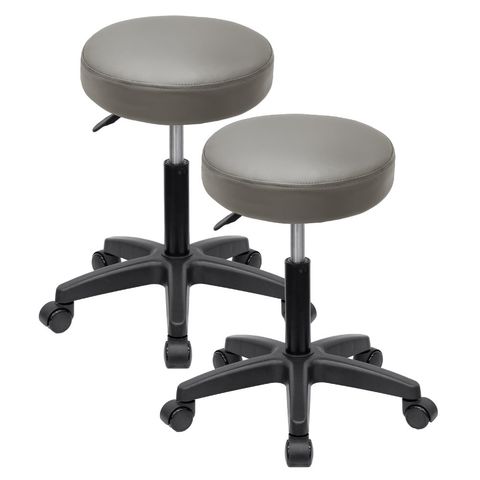 スツール キャスター付き 丸椅子 (グレー/2脚セット) 回転式 座面高 ハイタイプ 44cm-60cm ガス圧 昇降 PUレザー クッションスツール ワークスツール エステスツール カットチェア ラウンドスツール 美容室 いす イス 背なし 送料無料