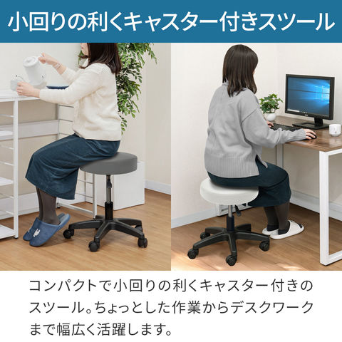 スツール キャスター付き 丸椅子 (オフホワイト/2脚セット) 回転式 座面高 ロータイプ 41cm-53cm ガス圧 昇降 PUレザー クッションスツール ワークスツール エステスツール カットチェア ラウンドスツール 美容室 いす イス 背なし 送料無料