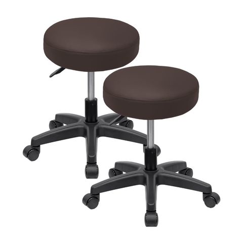 スツール キャスター付き 丸椅子 (ブラウン/2脚セット) 回転式 座面高 ロータイプ 41cm-53cm ガス圧 昇降 PUレザー クッションスツール ワークスツール エステスツール カットチェア ラウンドスツール 美容室 いす イス 背なし 送料無料