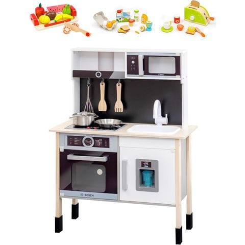 BOSCH ままごと キッチン (お鍋5点+おもちゃ3種(1980円お得)) 木製 製氷機付き お鍋・フライパン5点セット付き 音が鳴る! 光る!子供 子ども 3歳~ 料理 調理器具 ごっこ遊び 台所 ままごとキッチン ままごとセット ままごとキッチンセット 知育玩具 プレゼント 送料無料