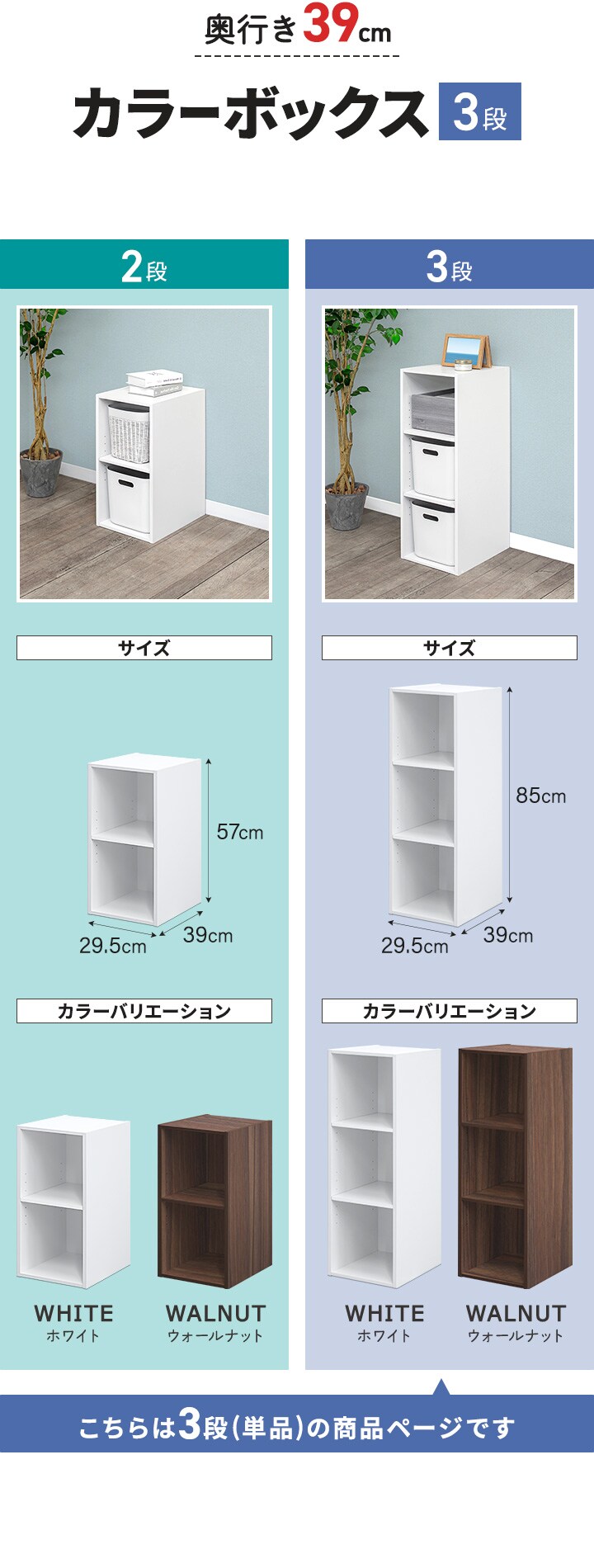 カラーボックス (ウォールナット・3段/ 1個 単品) 奥深 可動棚 スリム 幅 29.5cm×奥行39cm 高さ85cm 収納棚 棚 収納ボックス ラック A4ファイル対応 積み重ね カラーBOX スタッキング おしゃれ 収納ケース 本棚 シェルフ 北欧 新生活 送料無料