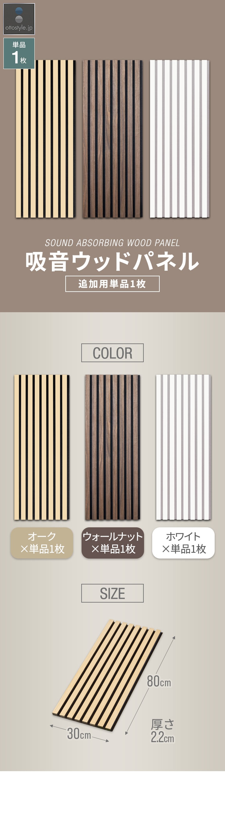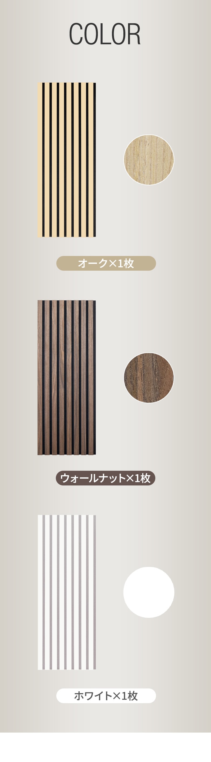 | カラー: ・オーク×1枚 ・ウォールナット×1枚 ・ホワイト×1枚 |