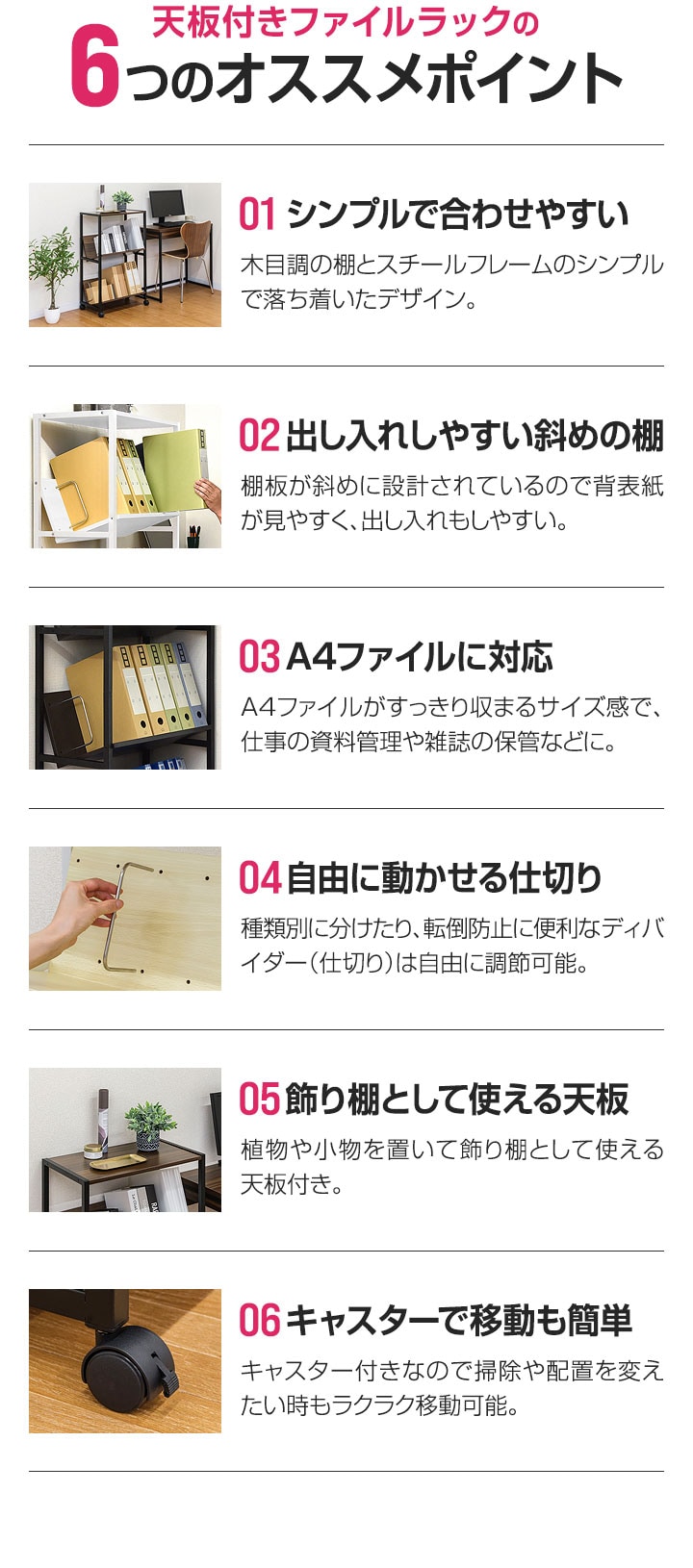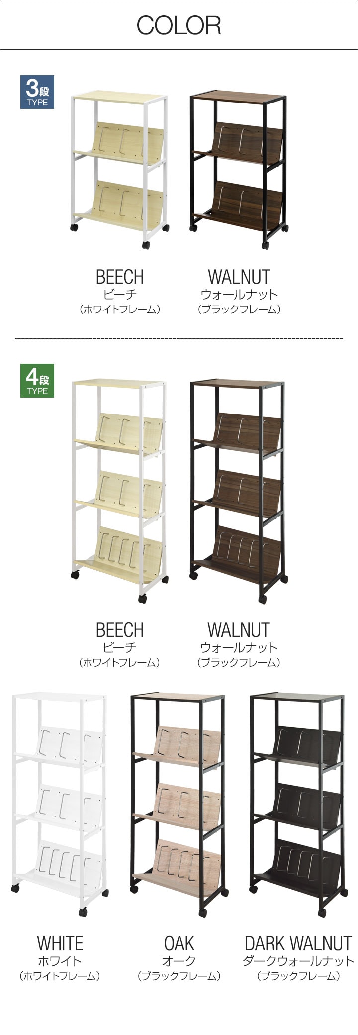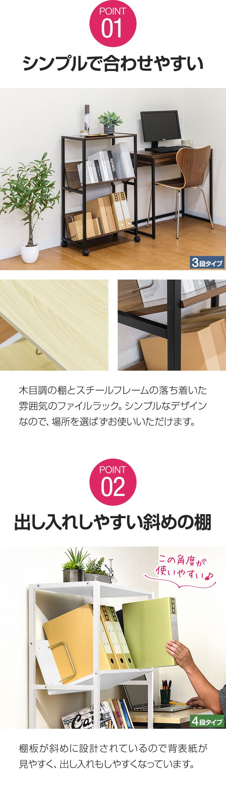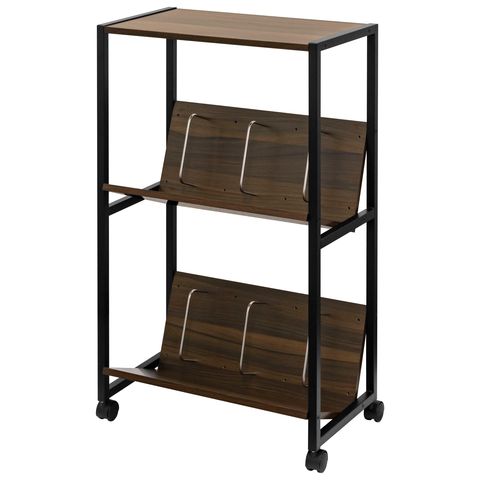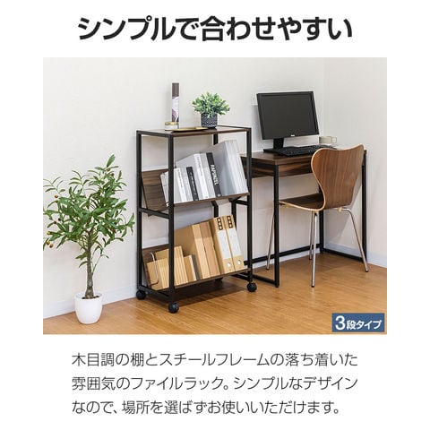 ファイルラック 斜め キャスター付き (ウォールナット/ブラックフレーム) 3段 ハイタイプ ファイルワゴン 本棚 収納棚 書類ラック A4 幅56cm 奥行31.5cm スリム スチールラック ファイル収納 ファイルボックス ファイルスタンド ファイル 書類 収納 オフィス収納 送料無料