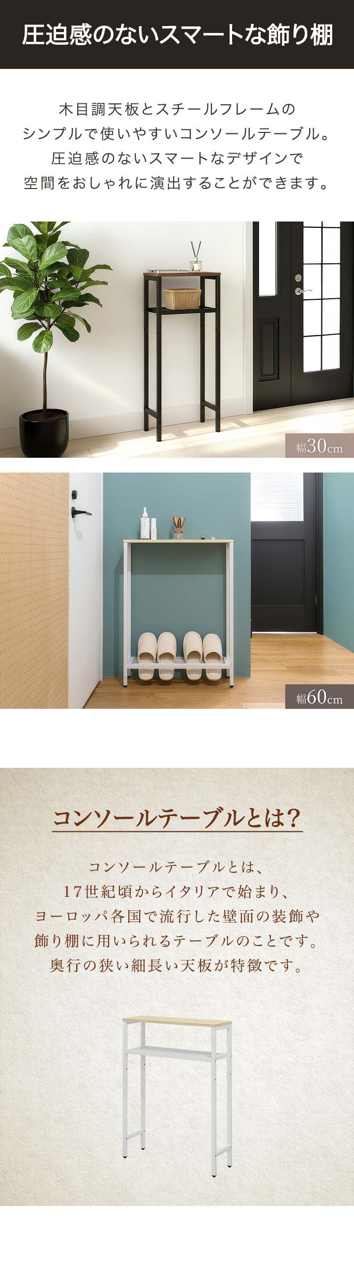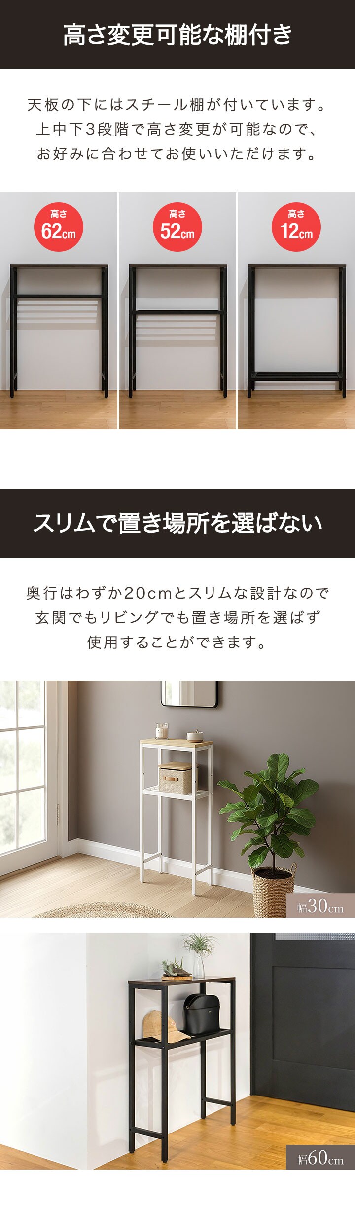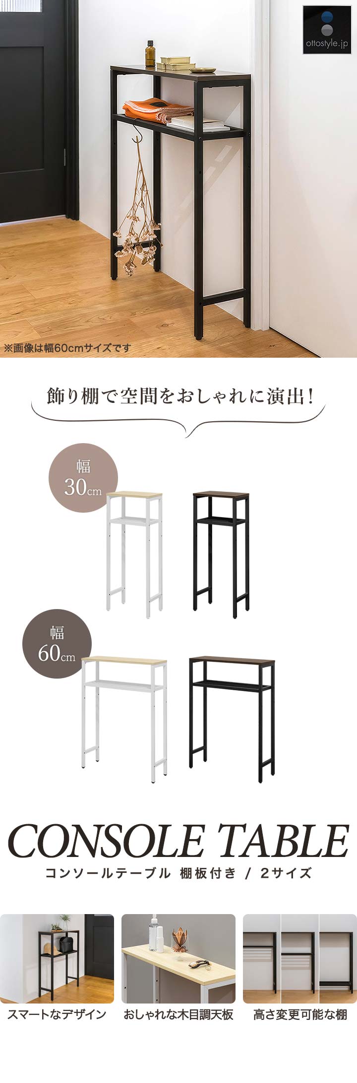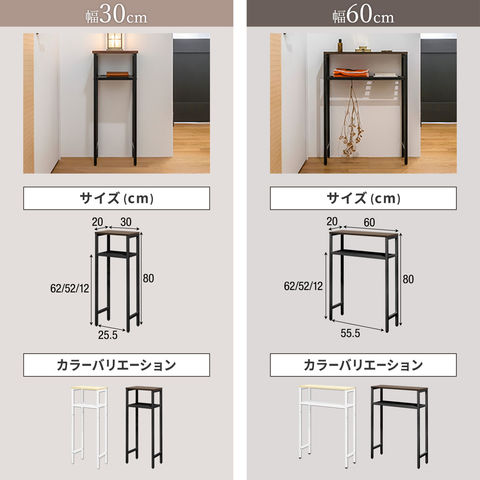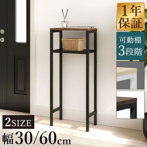 コンソールテーブル スリム 玄関 (幅30cm/ウォールナット) 幅30/60×20cm 高さ80cm 棚 高さ3段階 棚板が動かせる 収納ラック 飾り棚 廊下 玄関収納 玄関テーブル スリムラック サイドテーブル 北欧 省スペース 壁面テーブル コンソールデスク 木目 隙間収納 送料無料