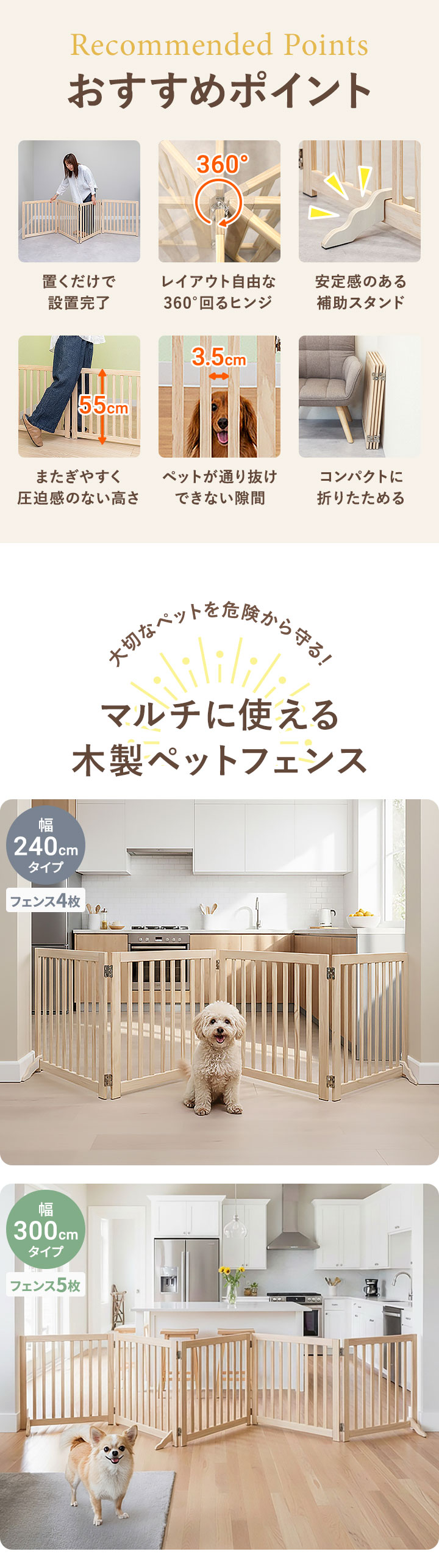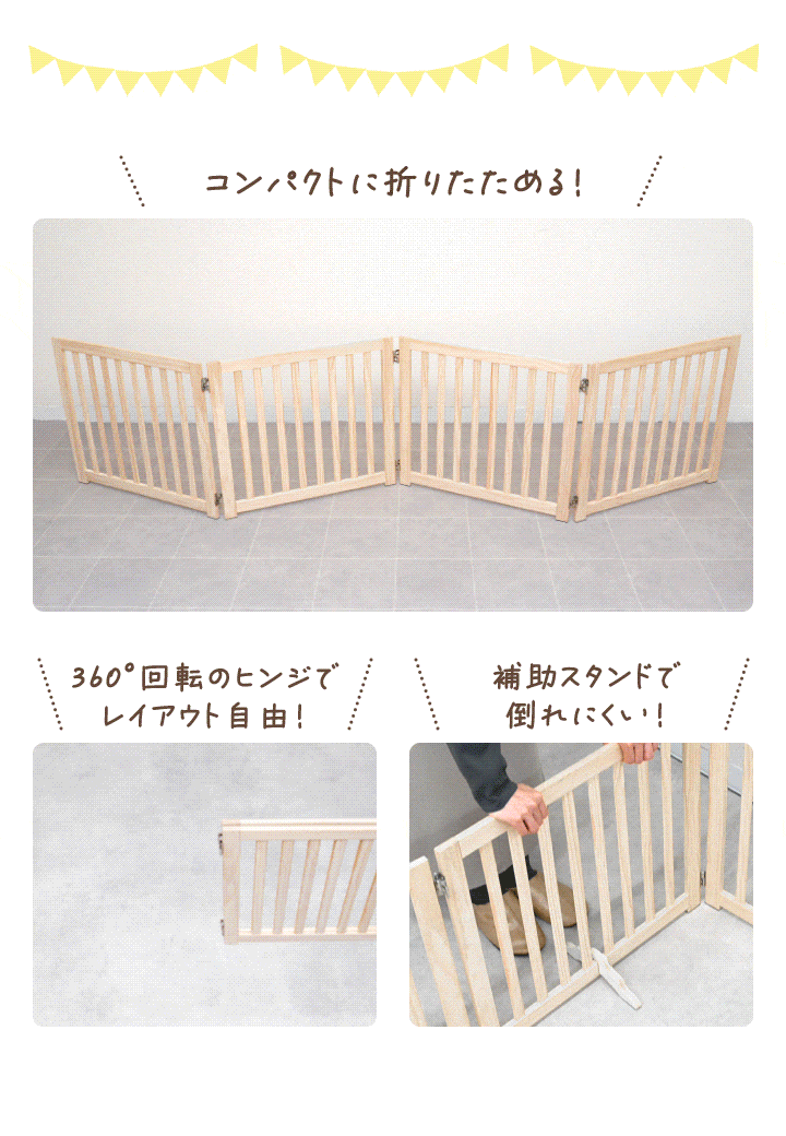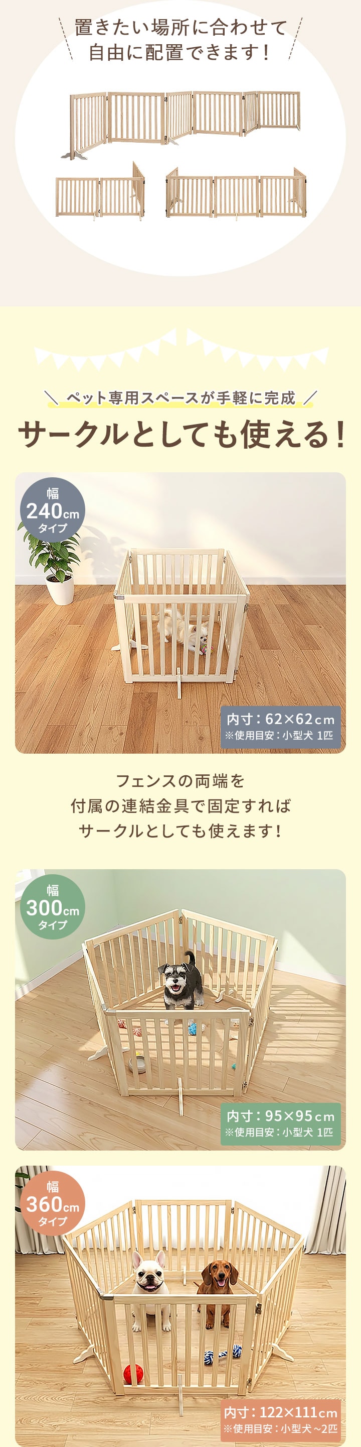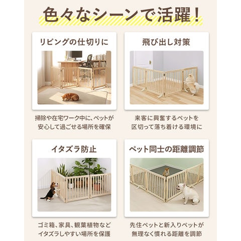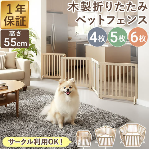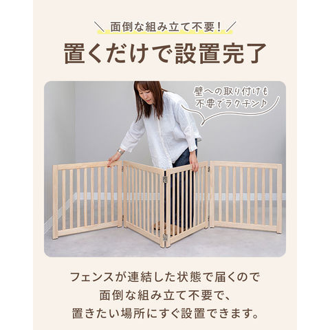 ペット フェンス 折りたたみ 置くだけ (幅240cm/4面タイプ) 室内 ゲート 高さ55cm 4面/5面/6面 3サイズ 補助スタンド付き パネル 伸縮 木製 ペットフェンス 360度 囲い 柵 ガード 犬 猫 仕切り パーテーション ペットゲート 脱走防止 玄関 キッチン 階段 送料無料