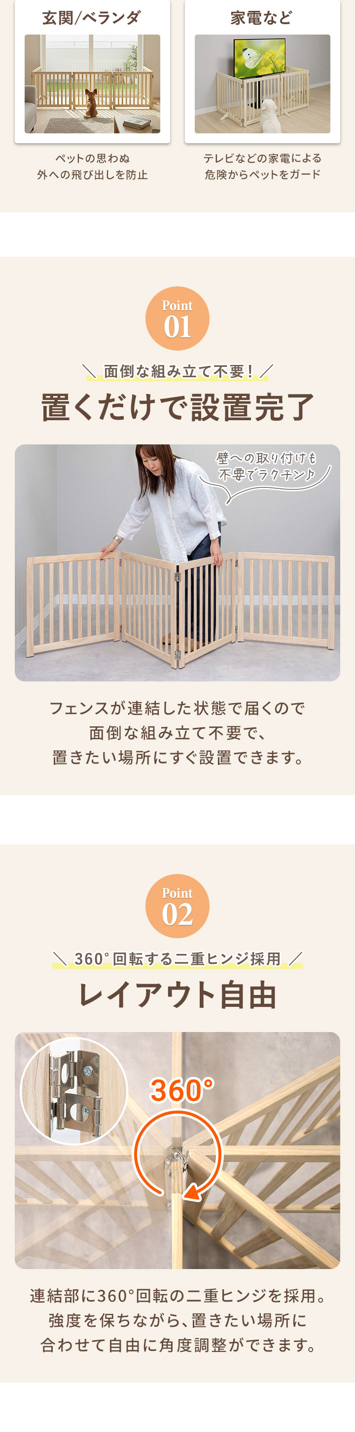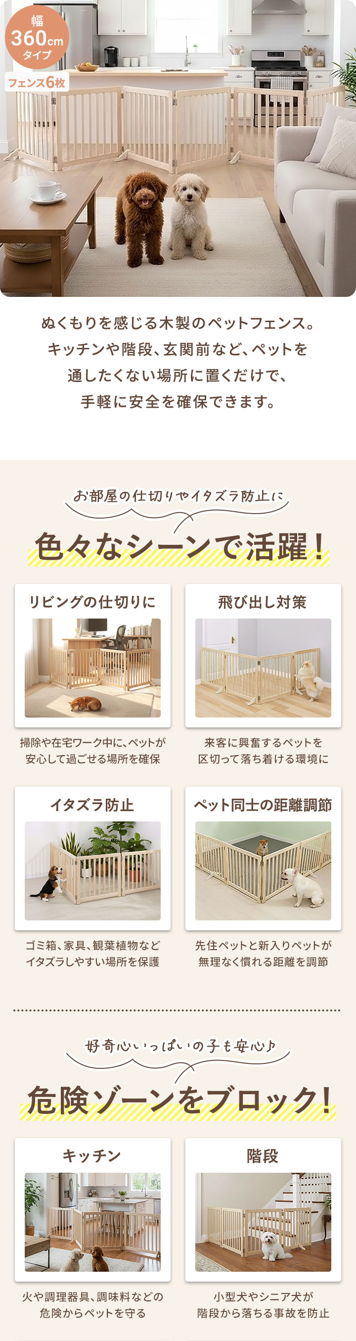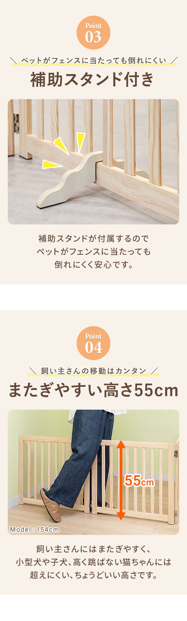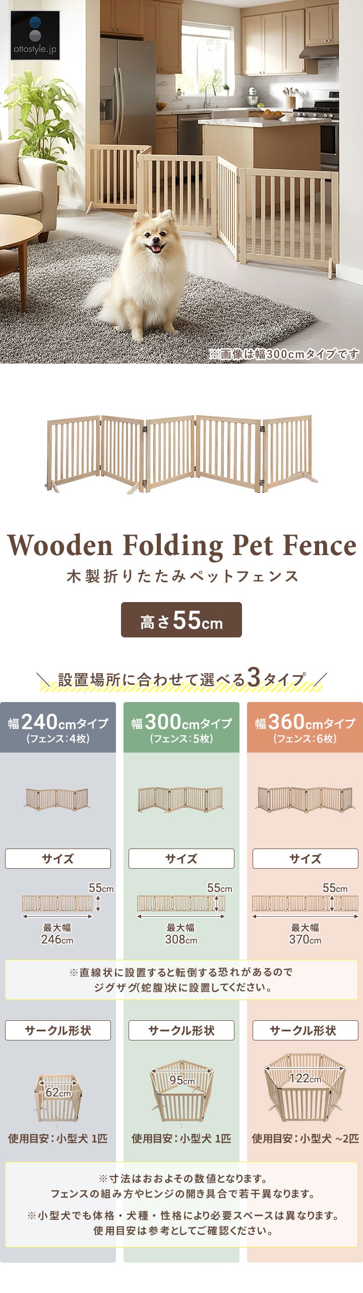 ペット フェンス 折りたたみ 置くだけ (幅240cm/4面タイプ) 室内 ゲート 高さ55cm 4面/5面/6面 3サイズ 補助スタンド付き パネル 伸縮 木製 ペットフェンス 360度 囲い 柵 ガード 犬 猫 仕切り パーテーション ペットゲート 脱走防止 玄関 キッチン 階段 送料無料