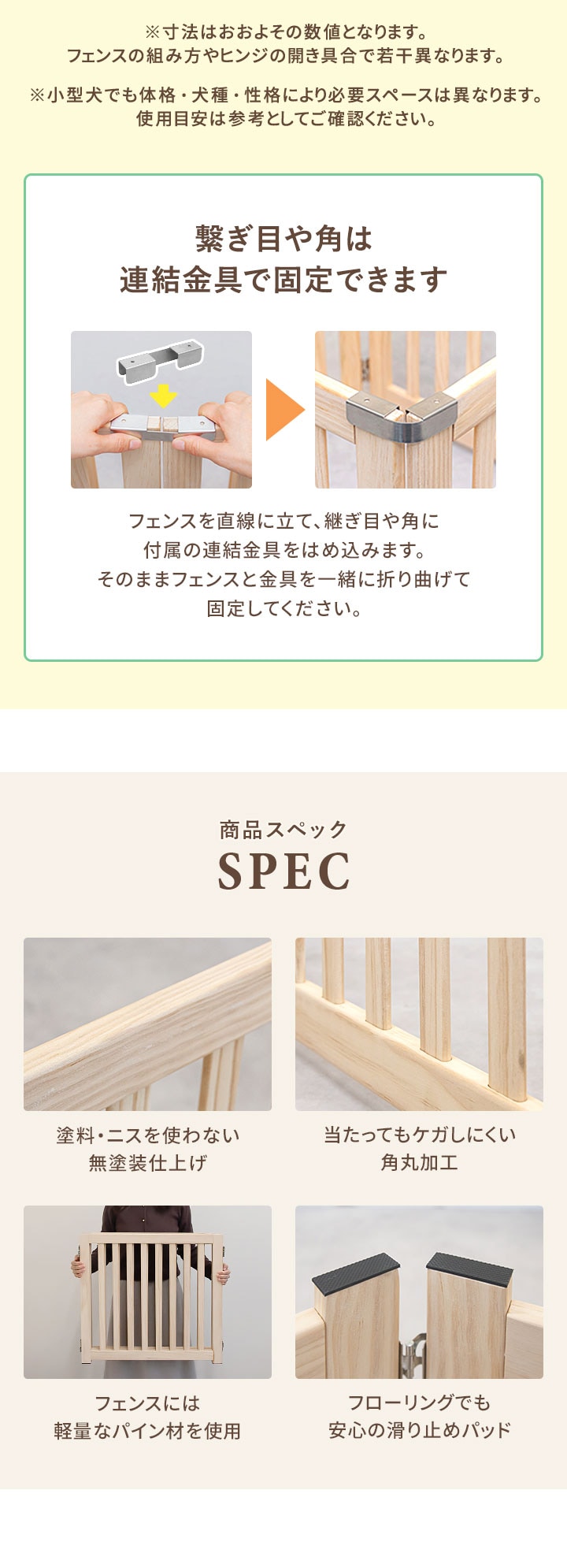 | 材質: フェンス:パイン材(松の木) 補助スタンド:プライウッド(合板) 連結金具:スチール |