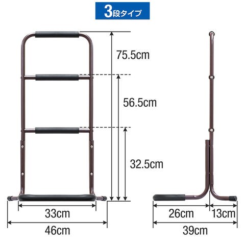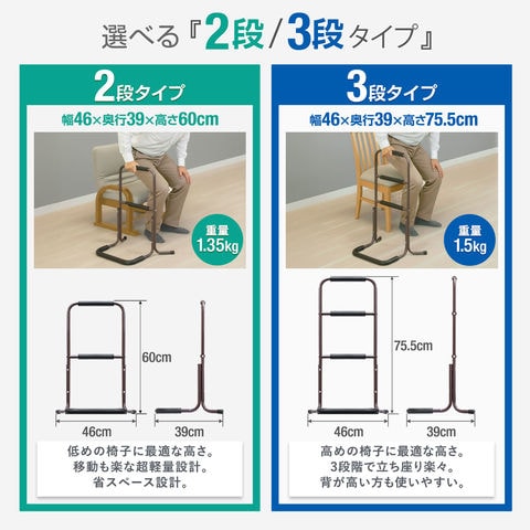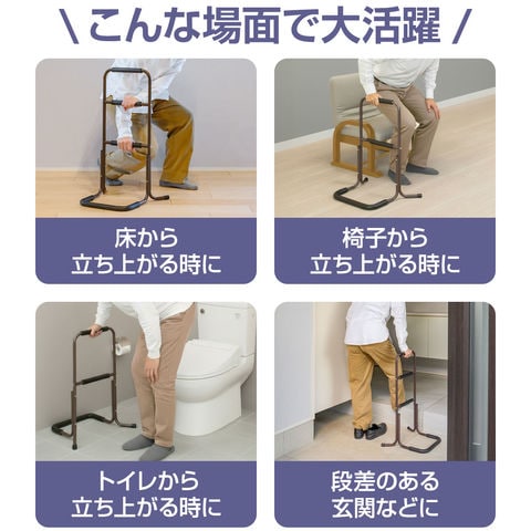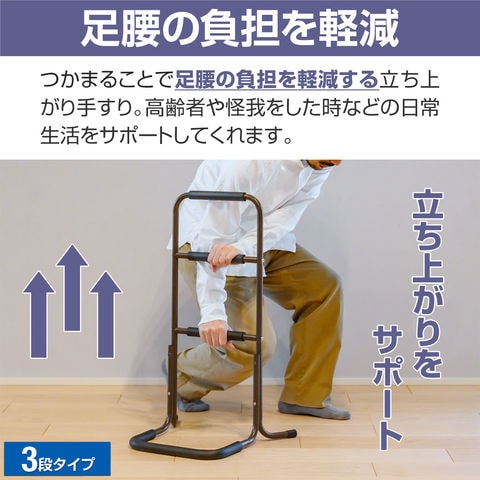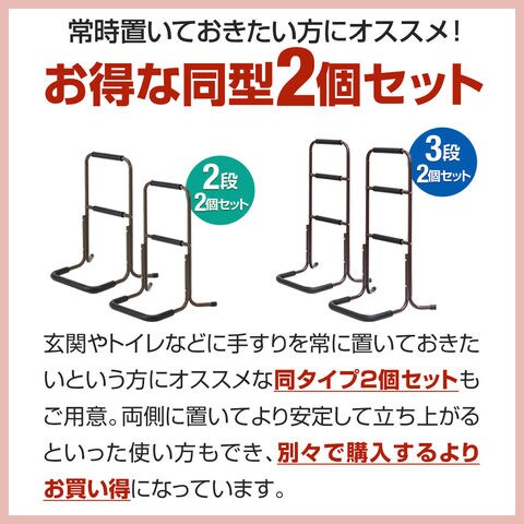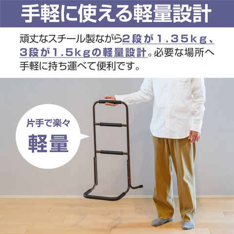 手すり 置き型 立ち上がり (3段/高さ75.5cm/2組セット) 補助 玄関 トイレ 介護 簡単組立 置くだけ 工事不要 ソファ ベッド 手摺 補助手すり 補助器具 サポート 転倒防止 つかまり立ち 片手すり 安定 軽量 楽々 高齢者 介護用品 リハビリ 段差 廊下 スチール 送料無料