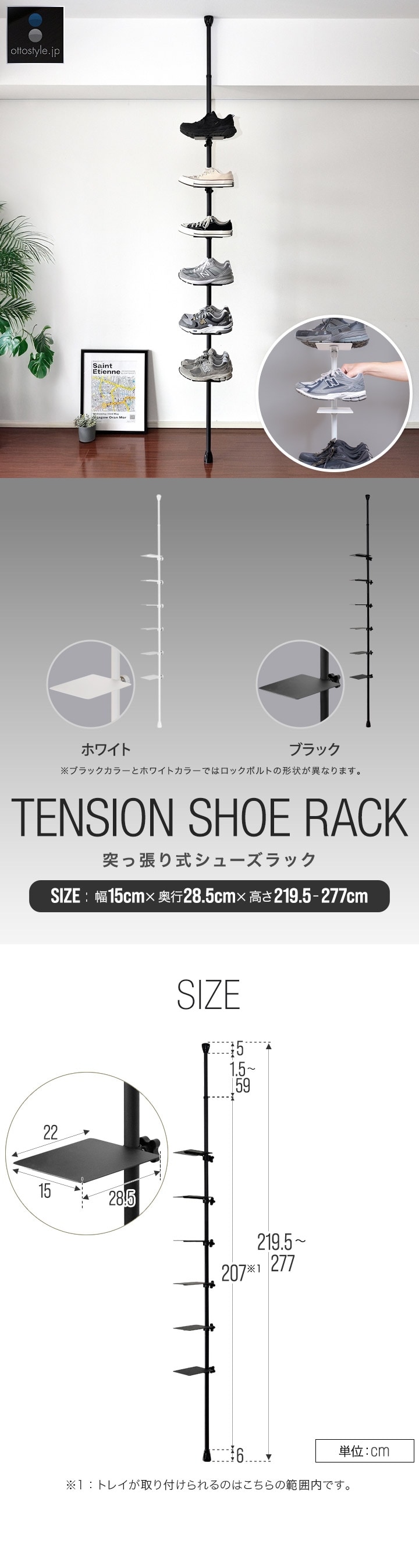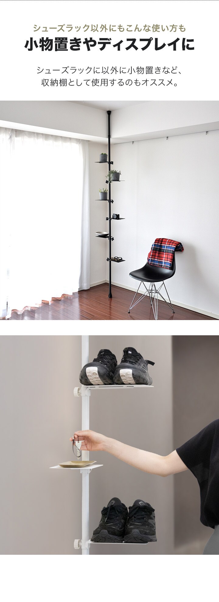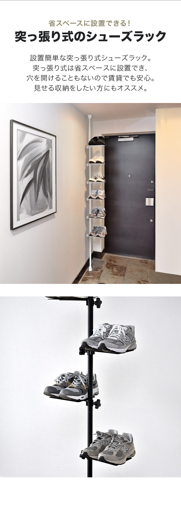 シューズラック スリム 省スペース (ホワイト/トレイ8枚セット) 突っ張りラック 突っ張り棚 シューズ収納 縦 靴棚 玄関 靴箱 下駄箱 靴収納 突っ張り棒 棚 つっぱり棚 壁面収納 ブーツ スニーカー おしゃれ 収納棚 突っ張り式シューズラック 送料無料