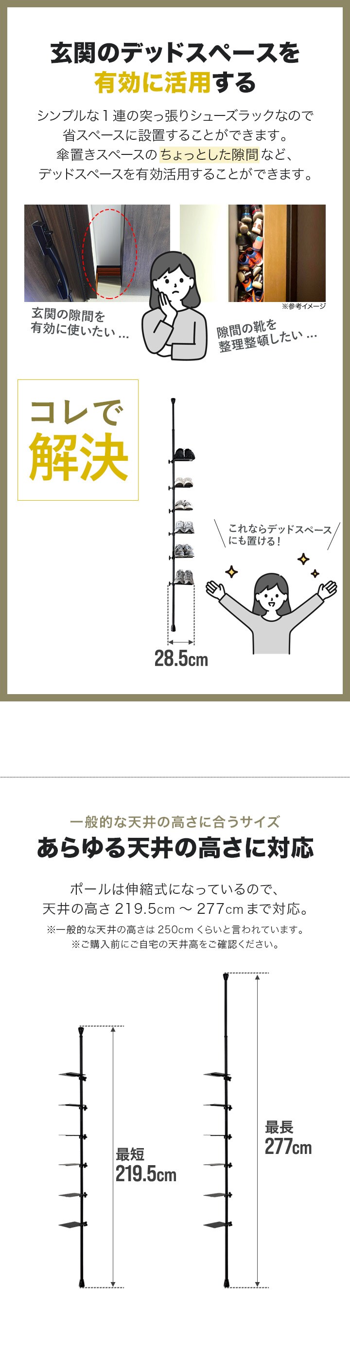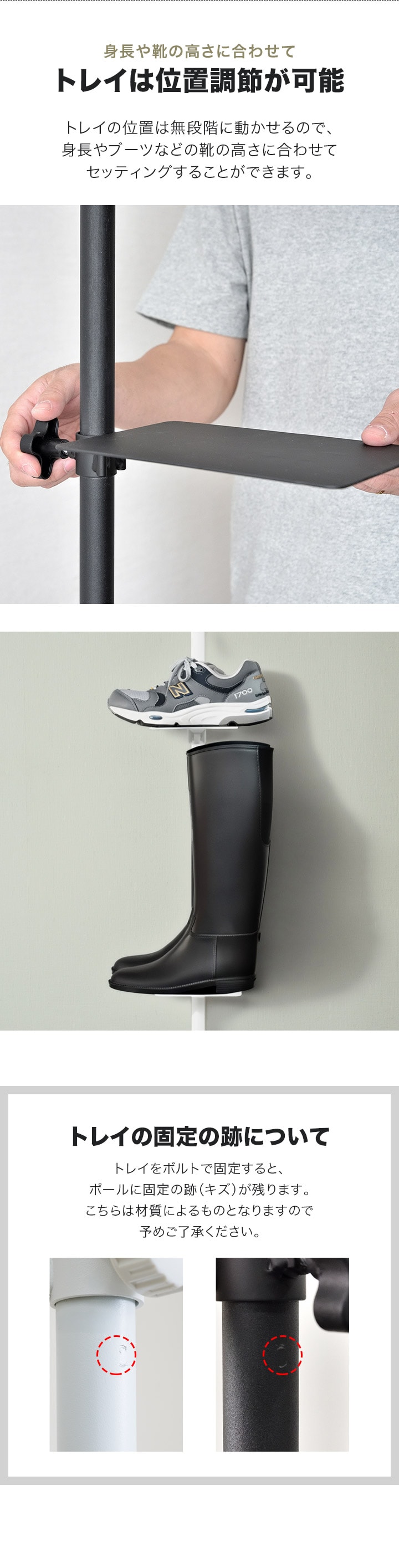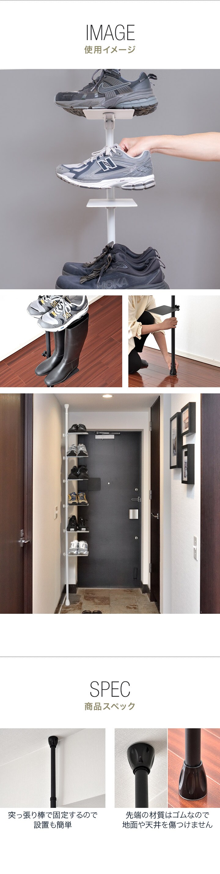 シューズラック スリム 省スペース (ホワイト/トレイ8枚セット) 突っ張りラック 突っ張り棚 シューズ収納 縦 靴棚 玄関 靴箱 下駄箱 靴収納 突っ張り棒 棚 つっぱり棚 壁面収納 ブーツ スニーカー おしゃれ 収納棚 突っ張り式シューズラック 送料無料